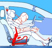 0,113. s : Sürücünün arkasında oturan yolcu (emniyet kemeri yoksa), sürücünün seviyesine kadar yükselir ve kafasıyla ona sert bir darbe yaparken, aynı anda kendisi de ölümcül biçimde yaralanır.